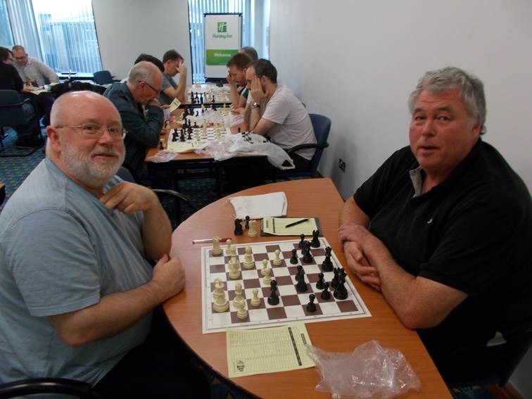 Mike Johnson (left, Sheffield/Chesterfield) of Spirit of Atticus B team, and Gary Hinchcliffe (right, Barnsley) who filled-in for Shropshire, going through their 2nd round game which was won my Mike.