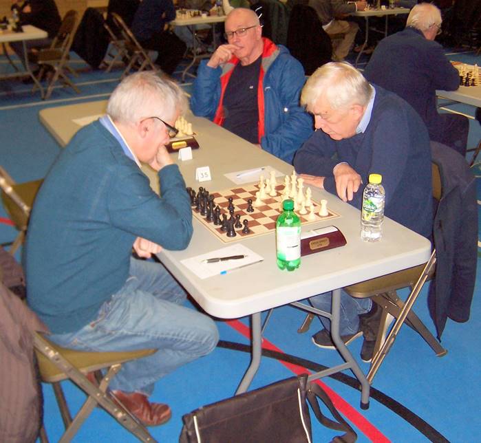 Alec Grice (white) against J. Gerry Johnstone (black). Both Beverley Chess Club (photo by D G Mills) |