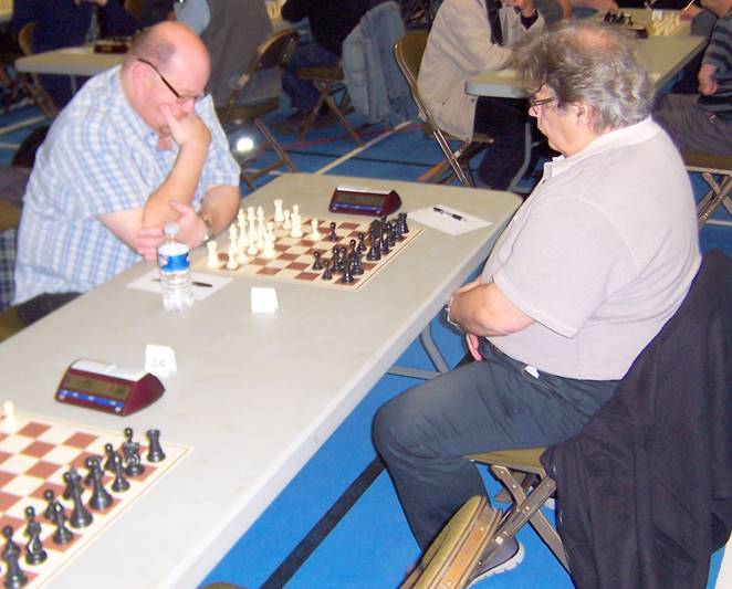 Intermediate Tournament winner, David Stothard of Hull Chess Club (white) against Pater Catt of Barnby Dun, Doncaster (black) (photo by D G Mills) |