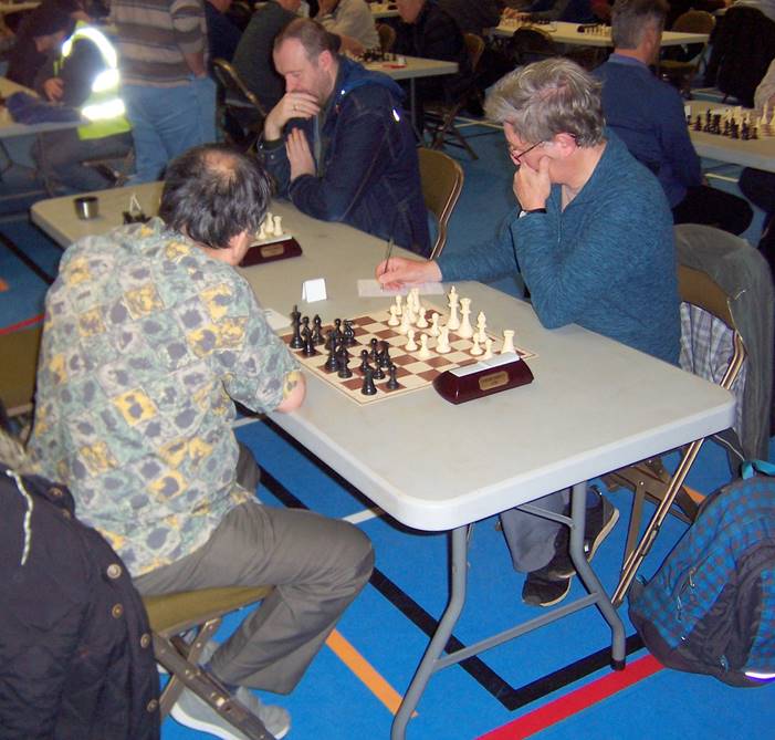 Jim Burnett (white) v Mark Hebden. Charlie Storey in the background. (photo by D G Mills) |